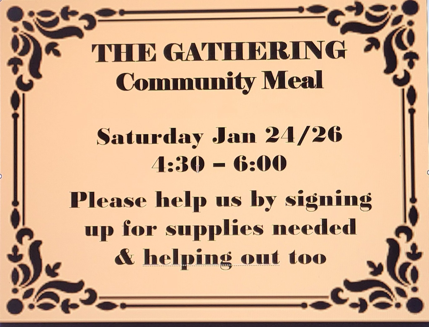 Everyone is invited to attend this free meal with lots of other giveaways. Craft for the kids, candy bar and free clothes. Invite your friends and family. Bring your own bags if you can. ALL ARE WELCOME